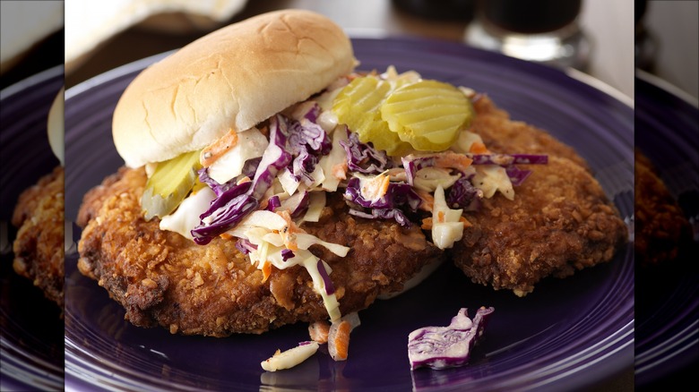While Iowans have claimed fried pork tenderloins as their own, the sandwich was made in the Hoosier State. In 1904, Nicholas Freinstein created the monster-size pork delicacy while operating a pushcart in Huntington, Indiana. The idea was to have a more user-friendly portable variation of a classic German Wiener schnitzel. Since then, permutations of this sandwich have made their way across what is affectionately known as the "pork tenderloin corridor" of the Midwest, spanning along Interstate 80 from Indiana to Iowa, according to Iowa Magazine.