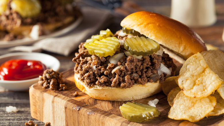 The sandwich itself is pretty basic. Ground beef is cooked and crumbled, seasoned with salt and pepper, and stacked a mile high with chopped onions atop a hamburger bun. It may not be visually appealing, but it is Midwestern comfort food at its best. If you want to change things up, stop at a Maid-Rite and order a Blue-Rite, a loose meat sandwich with blue cheese.