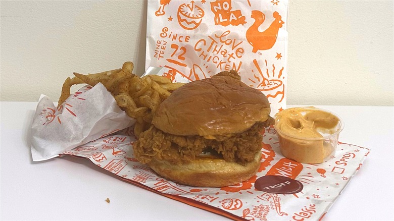 Popeyes has been expanding its menu rapidly this year. Major releases in 2023 include the Ghost Pepper and Sweet N' Spicy wings as well as the new option to add bacon and cheese to any of the chain's chicken sandwiches. The Popeyes Spicy TRUFF Chicken Sandwich isn't essential in the way some might say wings and bacon are, but this item offers a whole new flavor profile for the fast food chicken chain. While this latest item won't stick around full-time, we felt it was worth trying to see if the inevitable hype would be worth it.