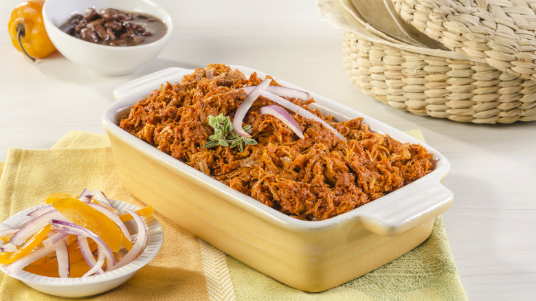 While microwaves offer a convenient method for reheating leftover shredded meat like pulled pork, they aren't the best for maintaining quality. In this case, using the oven or a slow cooker will result in much tastier leftovers. You'll want to take the leftovers from the refrigerator or freezer and transfer them to a deep pan safe for use in the oven. If you still have some of the leftover drippings reserved from when you made your dish, drizzle it over the meat. If you're out of drippings, no worries, as you can use water, stock, or barbecue sauce in its place.