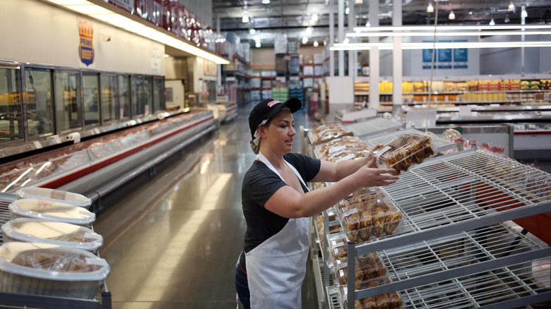 On the other hand, some items receive the expert touch of Costco's bakers but start with a pre-prepared mix and are then baked fresh in-store. These include the popular fruit custard pie, as well as the ever-popular white and chocolate sheet cakes. The luscious fruit bar cake and cheesecake, alongside dinner rolls, muffins, all-American chocolate cake, and pound cake are also part of this category.