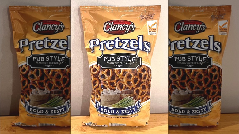 However, as enjoyable as the front-end flavor may be, filled with garlic, onion, and salt, the back end leaves a slightly dry sensation in your mouth. These pretzels are good, but be sure to have a refreshing beverage on standby to complement the bold seasoning. Out of all the options on this list, Clancy's definitely embodied the "Seinfeld" vibes.
