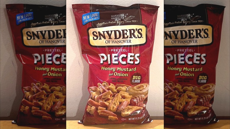 Snyder's of Hanover Honey Mustard and Onion Pretzel Pieces have captured the top spot on our list, by far. There's something truly captivating about these bite-sized pieces that we just adore. They offer the classic crunch you'd expect from regular pretzels, but the various sizes, shapes, and flavor coating make these pretzels a fun treat.