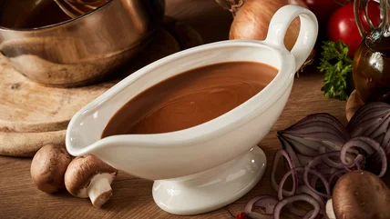 Sour cream is a common add-in for thickening soups and sauces, but it can also be stirred into gravy for a touch of tang and a smooth, creamy finish. When adding it to your gravy, add a dollop and whisk it in as the gravy nears boiling, but lower the heat to a simmer afterward; this prevents the sour cream from curdling in the intense heat. The result is a deliciously velvety gravy with a touch of acidity for depth of flavor.