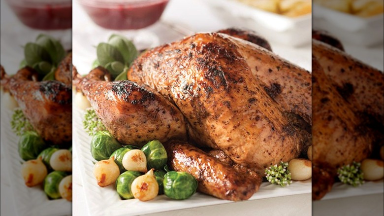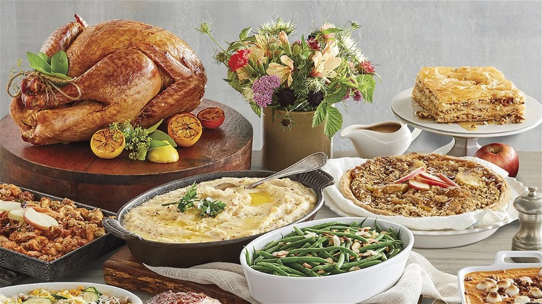 The Traditional Holiday Meal also serves 8-10 people and costs $99.99. This package includes a fully-cooked 10-12-pound turkey, whipped potatoes, stuffing, gravy, cranberry relish, and dinner rolls.