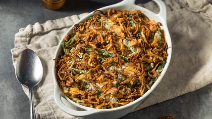 A Thanksgiving staple, green bean casserole is one of those dishes that doesn't take much effort to make but can still end up tasting delectable and thoughtfully prepared. Going off of the original recipe, which was created by Campbell's employee Dorcas Reilly in 1955, green bean casserole can be easily made by combining just six basic ingredients, including a can of Campbell's cream of mushroom soup, green beans, salt or soy sauce, black pepper, milk, and a layer of French-fried onions.