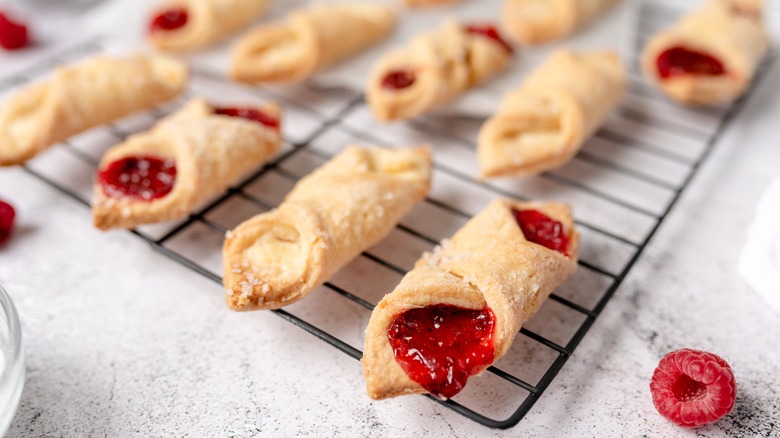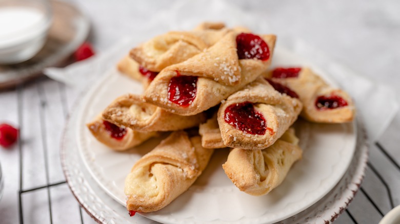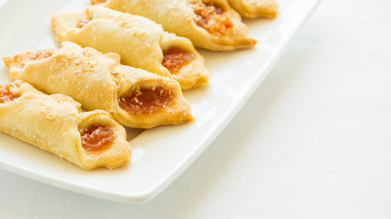 You might hear the name "cream cheese kolacky" and think we must be talking about a pastry filled with cream cheese. And they can be prepared that way — kolaches certainly often are — but a cream cheese kolacky doesn't have to involve cream cheese filling. Instead, there's a much more novel approach at play: The dough itself is actually made with cream cheese. The mixture of cream cheese, flour, and butter forms a base for the dessert that's both incredibly soft and extremely rich, two qualities you want in a pastry. From there, the tiny pastries get rolled out, filled with whatever filling you're going for (raspberry, apricot, poppy seed, etc.), then baked and dusted with confectioner's sugar.