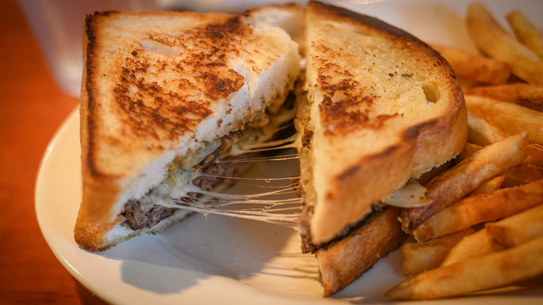"Melt" can actually mean a lot of things when it comes to sandwiches, and patty melts are just one kind of melt. The name itself refers to its most important ingredient, the melted cheese. However, a sandwich with only melted cheese is a grilled cheese, and if you're calling your sandwich a melt, then you've likely added other ingredients. Often, melts include a protein of some kind, such as ground beef, turkey, or tuna. Tuna melts, in particular, are a common kind of melt. Melts tend to be American, but they're similar to other foods around the world, such as the French croque monsieur, which includes ham and béchamel sauce.