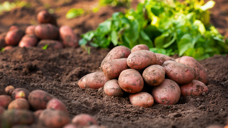 If you buy a lot of produce from farmer's markets — or if you grow your own — it's helpful to have a vegetable scrubber handy by the sink. Potatoes with thicker, rougher skins, like russets, do need a thorough once-over with a veggie brush to wash away all the grit because the rough surface can trap hidden dirt. Additionally, russets tend to be one of the potato varieties that are most often sold dirty. Thin-skinned varieties, however, can't stand up to the prickly bristles of a vegetable scrubber. In fact, even the surface of a regular kitchen sponge can scrape away the precious skin of a red bliss potato, which negatively affects both the potato's flavor and nutrients.