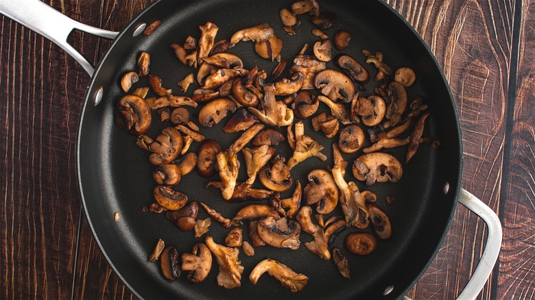While you can certainly add raw mushrooms to your next plate of salad, their sponge-like consistency leaves them a bit undesirable as common raw salad toppings. Mushrooms are made up of over 90% water, which might sound more soggy than savory. But when cooked properly, they transform into tasty, umami-flavored foods that are perfect to add to any dish, including your next hearty salad. Specifically, cooking mushrooms can activate the Maillard reaction. This leads to the development of complex flavors thanks to the way a food's amino acid and sugar content respond when exposed to sufficient heat. Besides water, mushrooms are composed of protein, carbohydrates, and various amino acids that can create epic flavors when cooked.
