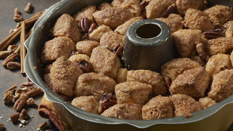 Savory options aside, canned biscuits can very easily be turned into a whole lineup of sweet desserts too. Take monkey bread, for instance. Canned dough is the perfect thing to use for monkey bread as it's already been portioned out and can easily be cut up, rolled in sugar, and covered in sweet syrup. Cinnamon rolls are another easy favorite to make with canned biscuits. Simply lay the pre-cut dough side by side, roll it out and cover it in toppings, then bake. Once it rises, these easy cinnamon rolls can be covered in icing and pulled apart to be eaten.