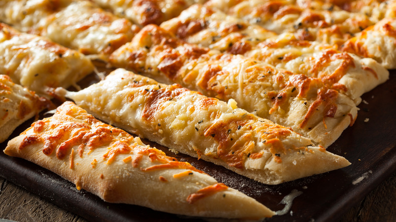 While this premade dough has the word "biscuit" on the packaging, the fluffy bread can be used to make a whole lineup of baked goods, breadsticks included. To make it happen, simply pop open your canned biscuits as normal. Now grab a slice of the biscuit dough and roll it out long and thin. Twist the dough to give it some texture, then lay it out on a baking sheet. To really up your appetizer game, brush the dough with some minced garlic and butter or sprinkle the dough with the seasonings of your choice. Cook the dough per the instructions on the can (or until your preferred level of golden-brown) and voila. Hot, fluffy breadsticks are ready for the dinner table.