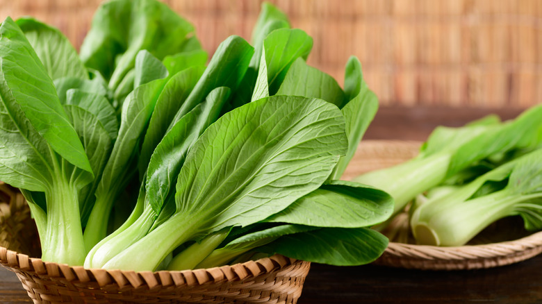 Before the cleaning and cooking process even begins, you'll want to select a head of baby bok choy that's fresh and doesn't require extensive cleaning and maintenance. Look for baby bok choy with crisp, vibrant, and deeply green leaves that are well-structured rather than wilted. Always avoid purchasing baby bok choy that emits a foul odor, as this can indicate spoilage. Not only should you inspect its color and texture, but you should also keep an eye out for any holes in its leaves as this indicates the presence of veggie-eating pests.