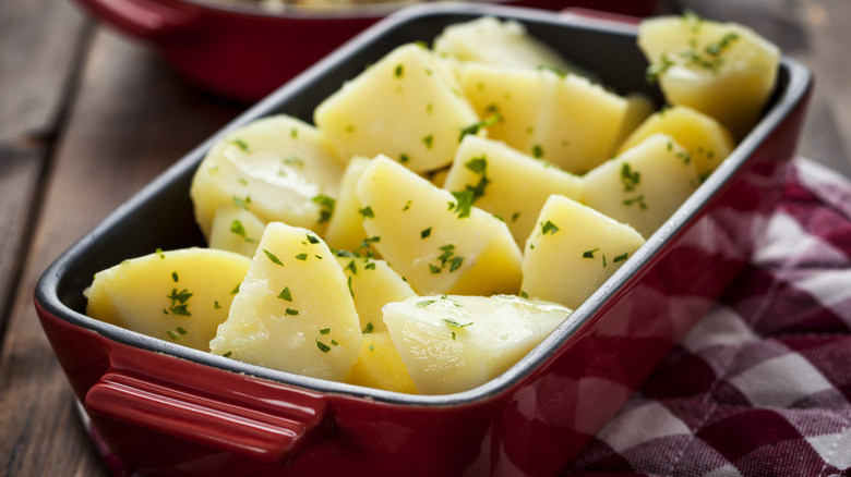 Buttered rye bread might be the most common vehicle for gzik, but it's not the only place for it, nor is breakfast the only time to eat it. The dip also serves as a fantastic topping for potatoes, especially if you add a little sour cream to the mix.
