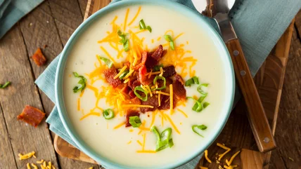 Though simply mixing ranch dressing powder into potato soup can already be a winning combination, there are a few additions that can enhance this culinary match even further. Bacon is a popular accompaniment to ranch dressing, so much so that Hidden Valley actually sells a bacon-infused ranch dressing; bacon is also a common potato soup addition, providing a smoky-salty flavor and a bit of crunchy bite to an otherwise smooth and creamy meal. Putting a little bacon in your soup alongside the ranch will harmonize well; the flavorful meat can stand up against the strong ranch taste.