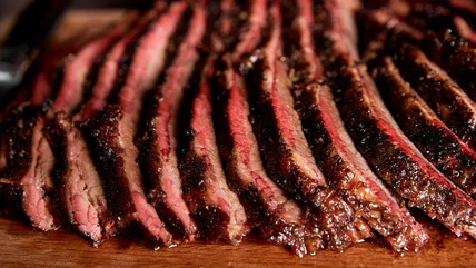Lovers of pastrami and Texas barbecue are united on at least one fact: Brisket is an amazing cut of beef, capable of incredible juiciness and depth of flavor. Pastrami lovers brine their brisket in pickling spices, crushed coriander and mustard seeds, and minced garlic for almost two weeks before roasting it low and slow in the oven. Conversely, Texas barbecued brisket is often coated in little more than generous amounts of ground salt and pepper and smoked (also low and slow) over hickory coals. Even when you trim the thick layer of fat off one side of the cut, there's some controversy over whether brisket should be cooked fat-side up or fat-side down. The answer is fairly complex, but keep this in mind: Cooking (or smoking) your brisket fat side up won't help keep it tender, but what the rendering fat is guaranteed to do is carry most of your spice rub with it.