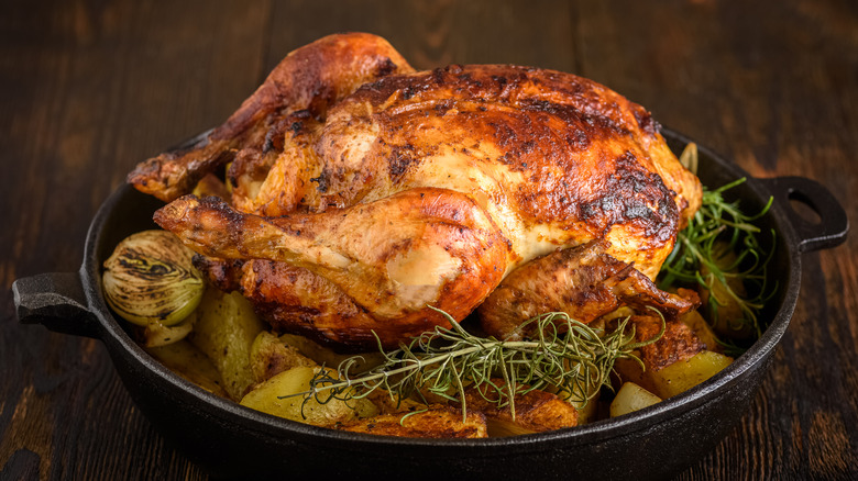 As Ramsay demonstrated on TikTok, while he coats his chicken in egg as he prepares to roast it, he also sprinkles the raw meat with Szechuan pepper (also known as Sichuan pepper). This ancient Chinese spice has a slightly fruity taste, and when the pepper enters your mouth, it creates a prickly, desensitizing feeling on your tongue. Author Harold McGee writes (via Red House Spice) that Szechuan peppers "produce a strange, tingling, buzzing, numbing sensation that is something like the effect of carbonated drinks or of a mild electric current." This unique pepper that essentially zaps your mouth is fascinating.