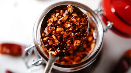 Chili crisp, or infused oil-based condiments in general, have been around in China in one form or another for hundreds of years, primarily as the kind of thing professional and home chefs alike would make themselves, in-house. The first commercially produced chili crisp didn't hit shelves until 1997, when Lao Gan Ma, owner of a noodle shop in Guizhou, southern China, saw customers' enthusiasm for her house chili crisp and decided to start selling it by the jar.