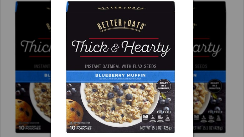 Blueberries are often paired with breakfast. Blueberry muffins, blueberry pancakes, blueberry waffles — all of these are delicious ways to kick off the day. Mimicking the flavor of blueberry muffins in oatmeal is definitely a clever move since that flavor combination is so tasty and familiar. Better Oats cashed in on this with its Blueberry Muffin oatmeal. The ingredient list on this oatmeal is short and sweet — quite literally, since sugar is the second ingredient.