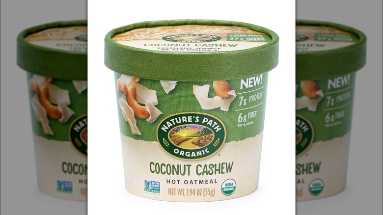 Nature's Path is mostly known for its breakfast products like toaster pastries, cereal, and granola. Nature's Path also has a wide range of oatmeal. The company sells canisters of old-fashioned oats, steel cut oats, and quick cook instant oats. It also offers boxes of various oatmeal flavors, including Maple Nut, Blueberry Cinnamon Flax, and Cacao. Coconut Cashew is another popular flavor. Sold in a cup that's just under two-ounces, this oatmeal delivers some great flavors and textures, but also contains nine grams of sugar per serving.