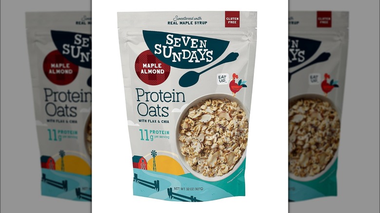 Seven Sundays sells cereal, granola, muesli, and oats. The oats come in a few different flavors such as Wild Berry, Apple Cinnamon, and Maple Almond. The company's Maple Almond oats have a hearty look to them and are gluten-free. We want to give this oatmeal credit where it's due, since it has a short list of simple ingredients. It also comes with healthy seeds like flax and chia, which are both known for being highly nutritious and for containing solid doses of protein and healthy omega-3 fatty acids. That said, maple syrup is also the second ingredient in the recipe for this oatmeal.
