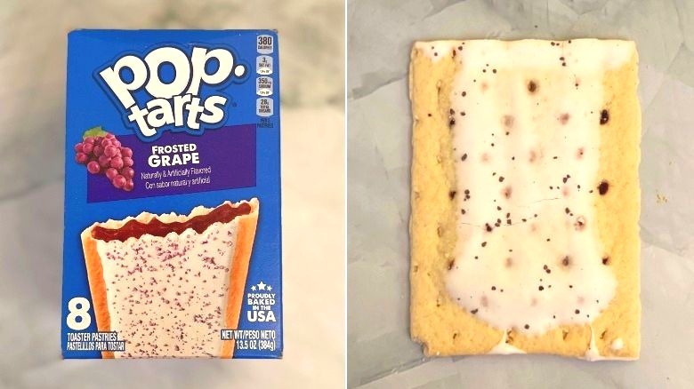 Was it worth the wait for a second helping? Well, the Grape Pop-Tarts are exactly what they say they are — Pop-Tarts with grape flavoring, but there's not much more to it beyond that. Heated grape jelly isn't something that most people scream for, and there seems to be a missing component here to offset the jammed sweetness. Can you say peanut butter? Pop-Tarts has, as far back as 1986, and here and there since, but the time again is now, and that would be such a grape idea!