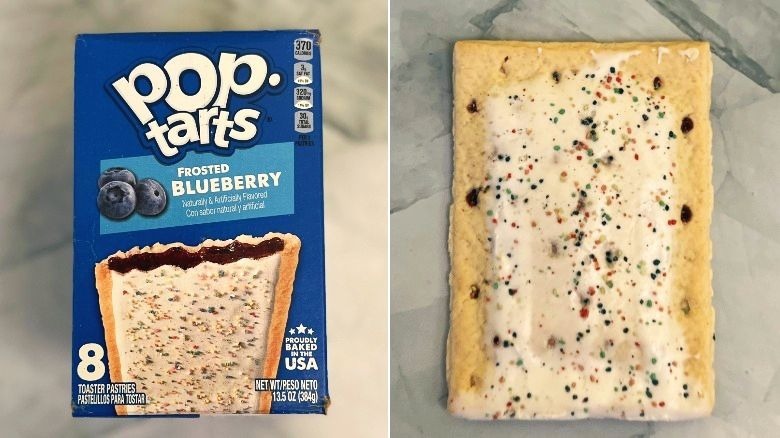 Need to cure the morning blues? This flavor has got you covered. Today's Frosted Blueberry Pop-Tarts are made of dried blueberries, dried grapes, and dried apples. With a rainbow of sugar sprinkles, it looks like a party in the front with business in the back.