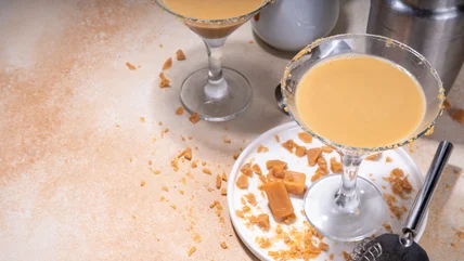 Of course, caramel-based cocktails will also be ideal — whether they are hot, cold, frozen, or in shot form. For these, consider drizzling the inside of your cocktail glass with caramel syrup as well. Try this fun combination with caramel-tinis, caramel mudslides, caramel White Russians, and more. Or mix it up and put a salted caramel rim on a chocolate-tini or espresso-tini ... the options are almost endless.