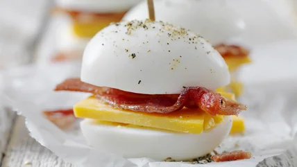 These little powerhouses can provide a vessel for fillings you'd usually put between two slices of white or wheat, such as bacon, cheese, deli slices, veggies, and spreads. Fortunately, assembling these mini breakfast sammies is as simple as making hardboiled eggs, slicing them in half, and holding all the fixings together with a strategically placed toothpick. From mini BLTs to ham and cheese and more, these little egg bites are delicious, easy to make, and will keep you going strong all day.