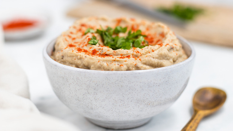 Alternatively, opt to use Chinese eggplants, which are smaller and typically have fewer seeds. You will need three of these for every globe eggplant. Roast them whole rather than halved. For extra smoky baba ganoush, consider grilling your eggplant instead of roasting it. And don't skimp on the paprika. It'll make the dish.