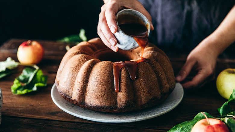 As far as cake recipes go, Gâteau de Sirop has a pretty standard list of ingredients, most of which you can probably already find in your pantry. Starting with flour, baking soda, eggs, and milk, most recipes for Gâteau de Sirop use vegetable shortening or oil instead of butter for a source of fat. The cake is usually flavored with traditional warming spices like the ones you'd find in pumpkin pie, which often includes cinnamon accompanied by ground ginger and/or nutmeg. The main sweetening ingredient is, of course, 100% pure cane syrup. While you can use any kind of cane syrup you have on hand, a great deal of Gâteau de Sirop recipes recommend Steen's pure cane syrup by name, perhaps because of its long and iconic history as one of the biggest brands of cane syrup in Louisiana.