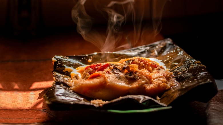 Tamales are a classic Mexican meal that's been around for ages. Yet their appeal never seems to get old — perhaps because few dishes can be assembled so easily while still delivering an intricate array of flavors. At its core lies a medley of meat and cheese fillings enveloped in masa dough, which is steamed within an aesthetically pleasing corn husk. Frankly, once you eat these hot staples of Mexican dining? They start to go real fast (here today, gone tamale).