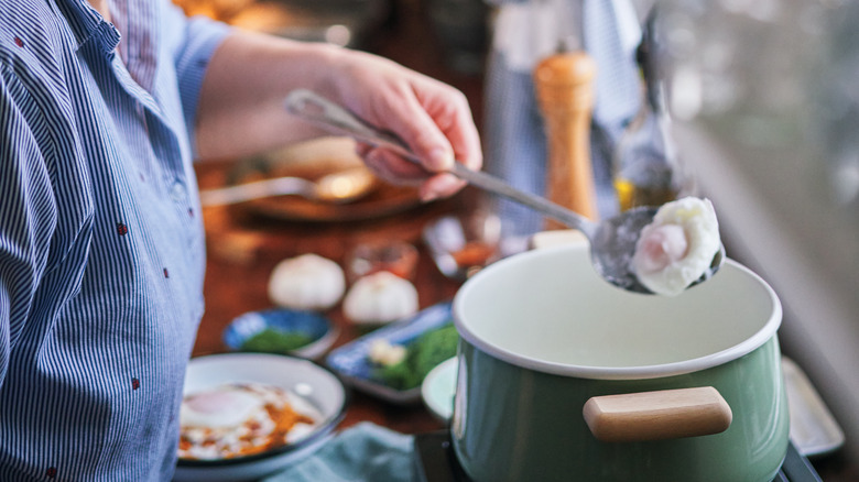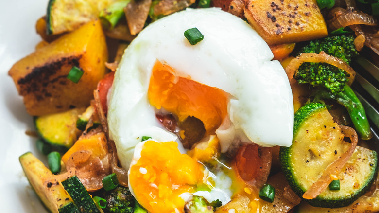 When it's time to serve breakfast, all you need to turn your roasted vegetables from a side to a centerpiece is a poached egg. The internet is full of recipes for making poached eggs, so find a method that works for you, as there's more than one way to get the job done. The key, however, is to keep the heat on the stove low enough so that the poaching water doesn't boil, which will break your egg apart before it ever gets a chance to cook.