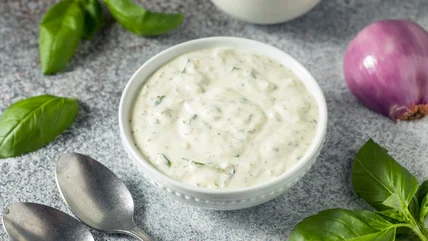 The original version of the dressing featured parsley and chives, though modern versions vary the included herbs. Some are basil-heavy, while some lean more strongly towards tarragon. Some updated versions also stray from using mayonnaise, opting for substitutions such as avocado or Greek yogurt. Vegan versions might use tahini. These variations will change the flavor and texture of the dressing from its original state; tahini, for example, imparts a nutty earthiness, while Greek yogurt will add additional tang.