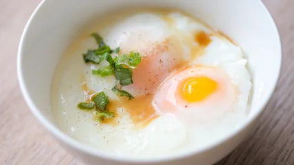 Steamed eggs are a subtle, fragrant dish, traditionally made by cooking beaten eggs with hot steam until tender, using a wok or a bamboo steamer, and then adorning them with spring onions and other gentle aromatics. The classic cooking style required for these eggs, however, can take a lot of utensils and time, and an easier way to make them is in the microwave. Steaming eggs in the microwave can take as little as 3-4 minutes of cooking time, and produces a tender custard that has a slight jiggle to it.