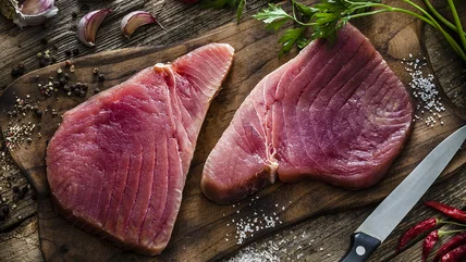 Once you've picked out your fresh tuna and purchased it, transport it home on ice and either get it into the refrigerator or freeze it if it hasn't been frozen already: The colder the better and safer your tuna will be. Ideally, you should use it on the day of purchase. Filleting any fish yourself will give you greater control over sanitary conditions than if it were done at the fish market, but depending on the type of tuna, it can be a very large fish, so it's likely the fishmonger will have done this for you, and you will have bought filets. To minimize the risk of cross-contamination while preparing your fish, make sure everything is sanitized, from your cutting board to your fish scaler and knives. Keep an eye out for worm-like parasites as you prepare your fish; some are visible to the naked eye. If your fish has been frozen according to the FDA regulations they should be dead and can be removed by you.