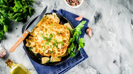 If you're not done planning your holiday menu yet, vegan and omnivorous guests alike will be impressed by a beautifully roasted whole cauliflower. Just pick your favorite seasonings, and get ready to claim your title as the best plant-based host around.