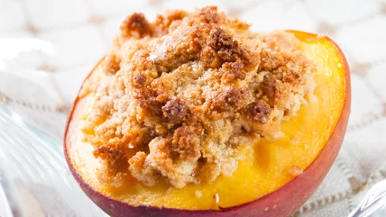 But poached fruit desserts don't have to stop at pears, and another alliterative seasonal delight works a treat, too. Dare not just to eat a peach, but poach it, and you'll be rewarded with a fragrant orb of orange sunshine, tender to a spoon and sweet and juicy on the inside. The method is much the same as with pears, just with one extra step: The peaches need to be blanched and then shocked in iced water in order to peel the skin off before going into their syrupy bath.