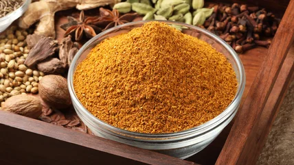 Curry powder is not just a single dried spice, but a combination of a number of unique dried and ground varieties. These often include cumin, turmeric, coriander, chili powder, and an additional mix of spices known as garam masala — which contains items like coriander, cardamom, and cinnamon. The blend of all of these produces an extremely deep, rich, warming, and complex flavor that is potent even in small amounts. Curry varieties can be hot or mild, depending on whether or how much chili has been added to the mix.