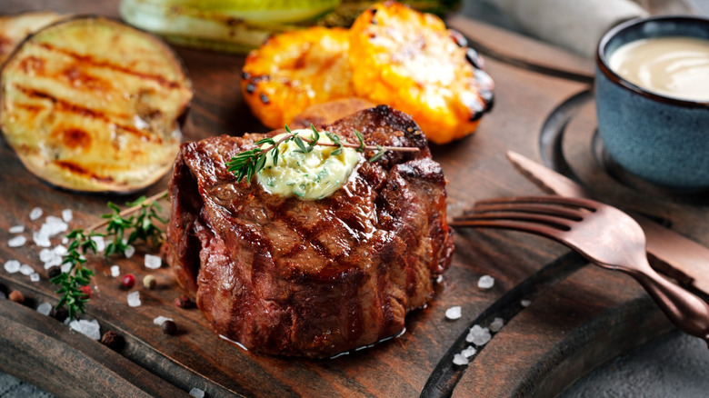 Southwest butter is also excellent on grilled steak. After the steak has been cooked to your liking, add a scoop of southwest butter on top while the steak is resting. The residual heat from the freshly grilled beef should be enough to melt the southwest butter, sending it drizzling down the sides of the steak. Southwest butter is also an easy way to jazz up some rice — simply stir it in to taste after it's cooked and add a punch of flavor. The beauty of southwest butter is that it's highly versatile, so let your imagination run wild.