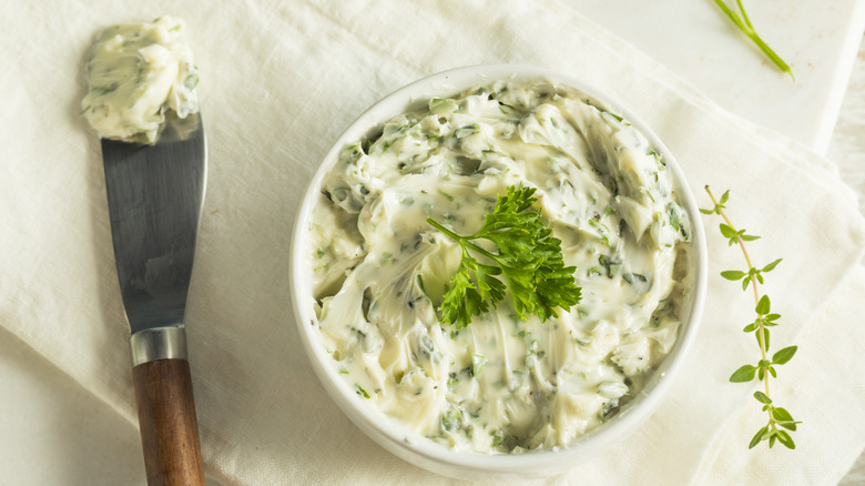 Southwest butter is essentially a type of compound butter. For the uninitiated, compound butter is basically just flavored butter that's mixed with various herbs and spices. As its name suggests, southwest butter is butter that captures the flavors that we typically associate with cuisine in the southwestern US. Cumin, cayenne pepper, smoked paprika, lime, minced chili peppers, and herbs like cilantro, thyme, and oregano are often in the mix.