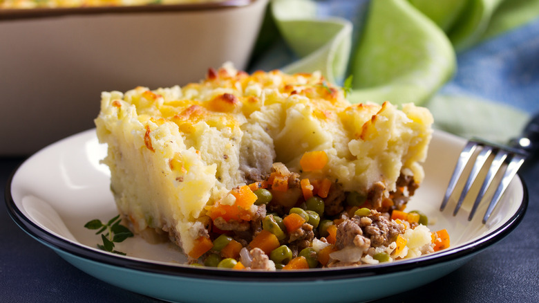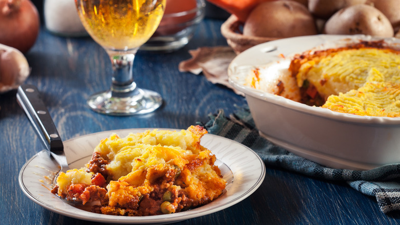 Peruse the menu of many a pub in Britain or Ireland, and you'll likely find shepherd's pie. It's a classic British meal, beloved and steeped in tradition. Like many traditional dishes, shepherd's pie has a murky history. According to some, the name first appeared in the mid-1800s in an English cookbook described as a Scottish dish, but similar pies crop up in cookbooks earlier still. Still others claim that shepherd's pie has Irish origins dating back to the 1700s. Regardless of the country or the exact date, it was typically a meal for the lower classes — hearty, filling, and a way to use scraps and avoid waste.