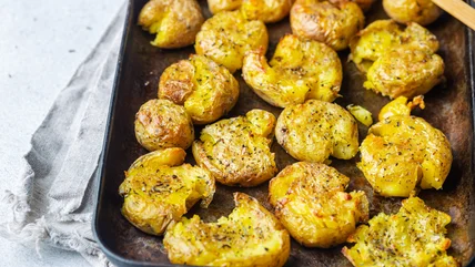 Regular roasted potatoes can be tasty, but let's be honest, sometimes they have little to offer in terms of texture. If you use a waxy spud variety, for example, or don't coat them in enough fat, they could easily end up being soft all the way through rather than crispy on the outside. That's precisely where the smashing technique comes into play. Just by smashing down the potatoes, more of the flesh and skin comes into direct contact with the heat of the pan, which in turn leads to crispiness.