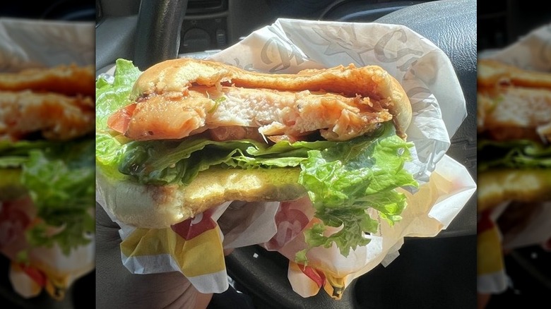 However, the quality and flavor are up for debate. The tangy and offbeat BBQ sauce doesn't appeal to everyone, and some customers have noted the chicken didn't seem of high quality or cooked well. Seeing as how the opinions on this sandwich fall all along the spectrum, and whether or not you'll enjoy it likely hinges on the location you visit and your feelings about the unique BBQ sauce, this one lands lower on our list.