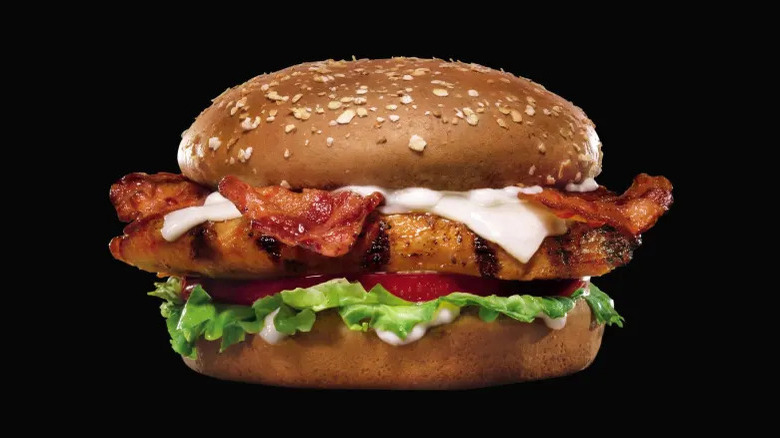Jack in The Box has its own Grilled Chicken Sandwich that some people get excited about, and others find boring and off-putting. The sandwich features a grilled chicken fillet with lettuce, tomatoes, and Good Good Sauce served on toasted sourdough bread. According to customer reviews, there's nothing particularly special about it. The texture of the chicken is also unpalatable, with one reviewer on Yelp saying, "The worst part, the entire chicken patty had a tough rubbery consistency. Had to spit it out..." On Reddit, another severely disappointed user said, "I HATED it. The chicken club is far superior. The sauce just tastes like watered-down French dressing."