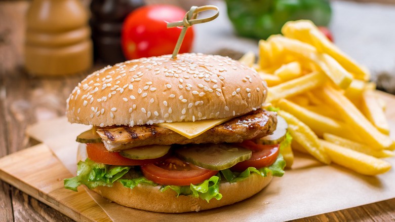 Whataburger makes a decent Grilled Chicken Sandwich, considering the chain is all about burgers. This sandwich features a grilled chicken filet with tomatoes, lettuce, and WhataSauce on a brioche bun. With incredibly simple ingredients, the sandwich isn't a showstopper, but some people still think it's worth a try. It seems no one has qualms about the quality of execution of the sandwich, with one reviewer highlighting how the sandwich was served hot and fresh. A Reddit user praised it, saying, "decided to try the grilled chicken sandwich, honestly it was about the most perfect one I've had."