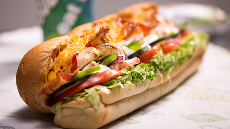 According to many customers, Subway's Elite Chicken and Bacon Ranch sandwich lives up to its name. Subway has had a chicken, bacon, and ranch sandwich on the menu for years, but it frequently mixes up the ingredients and takes it on and off its list of offerings. This heavy and decadent sandwich is a footlong with bacon, rotisserie-style chicken, double Monterey cheddar cheese, tomatoes, red onions, lettuce, and creamy peppercorn ranch with a punch.
