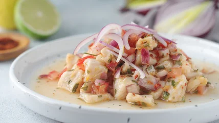 Ceviche might be the only common dish in the world that you can say is "cooked," but also not really. A combination of fresh seafood and vegetables, ceviche is made in citrus juice, attaining a cooked-like consistency without any heat involved. Typically, this juice is either lemon or lime juice, which not only has its signature textural effect on the fish in question but also imbues them with the fruit's natural flavors.