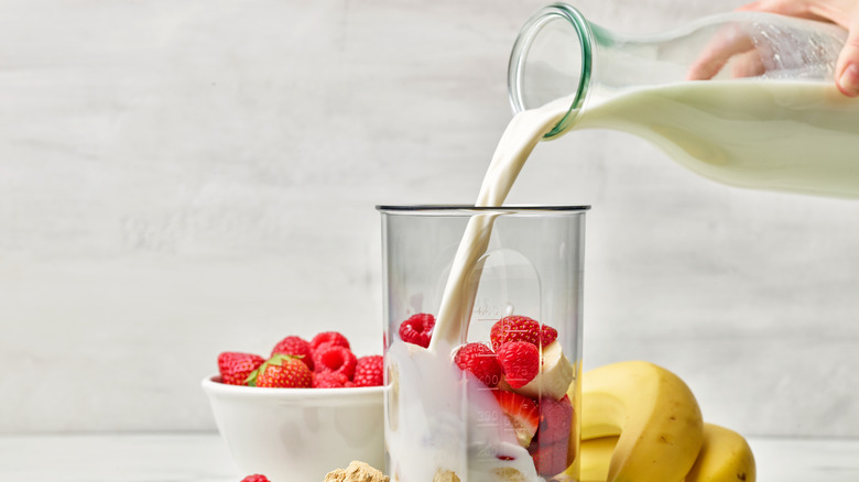 Buttermilk shares some flavor and textural notes with a thin yogurt, and though it's thicker than standard milk, it's still got a viscosity that will bring a round creaminess to any drinking experience. You can transform it into a sustaining smoothie by adding fruit like mangoes, bananas, or berries, along with a sweetener like honey, maple, date syrup, or coconut nectar. Blend up a buttermilk banana bean smoothie for an extra boost of protein and density.