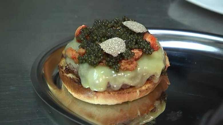 The Gold Standard is a $700 burger served at Drury Beer Garden in Philadelphia. The ingredients list reads like a who's who of expensive products and includes an A5 wagyu burger patty, caviar, black truffle, gold leaf, and lobster. This final ingredient is flambéed with Louis XIII cognac, a liquor that routinely costs over $4,000 per 750-milliliter bottle. A 1-ounce pour of this prestigious cognac is also served alongside the burger.